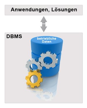 Datenbanken bilden in den meisten betrieblichen Informationssystemen die Grundlage zur Verarbeitung der Daten. Die Datenbank besteht aus den betrieblichen Daten und einem System zum Management dieser Daten (DBMS). Anwendungsprogramme greifen auf die Daten in der Regel über die Datenbank zu. Entweder arbeiten Anwendungen mit einer vorhanden Datenbank zusammen oder die Anwendung enthält selbst eine eigene Datenbank.